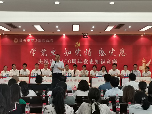 为隆重庆祝中国共产党成立100周年,重温中国共产党百年光辉历程,昭示共产党人始终为中国人民谋幸福、为中华民族谋复兴的初心和使命。2021年7月2日上午,由中共自贡市发展和改革委员会直属机关委员会主办,四川轻化工大学彩灯学院承办的中共自贡市发展和改革委员会直属机关委员会“学党史、知党情、争先锋、促发展”的庆祝建党100周年党史知识竞赛活动在自贡市发展和改革委员会会场举行
