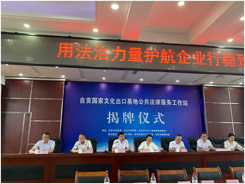 6月14日,自贡市国家文化出口基地公共法律服务工作站在自贡市司法局挂牌成立,工作站的成立将为自贡文化出口企业提供更有力的法务支持与更好的法务服务。