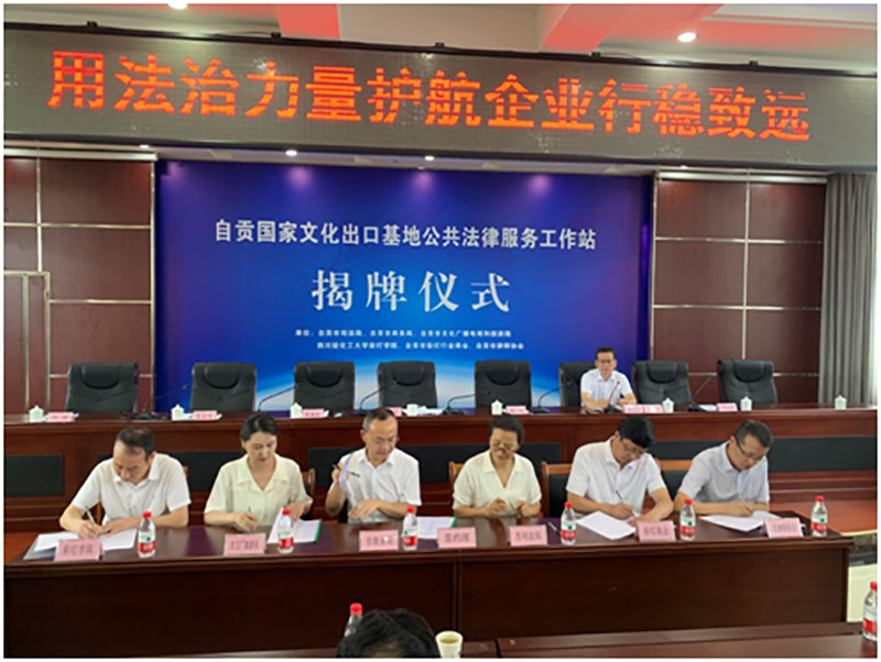 会上,市司法局、市商务局、市文化广播电视和旅游局、四川轻化工大学彩灯学院、自贡市彩灯行业商会、自贡市律师协会签署了合作协议,共同设立自贡市国家文化出口基地公共法律服务工作站,实现自贡市涉外商事与法律服务中心、四川轻化工大学优质法律服务人才资源共享,为自贡文化贸易企业提供优质法律服务。