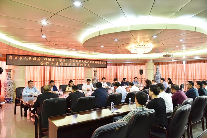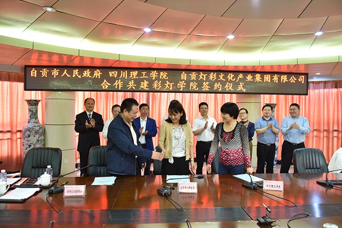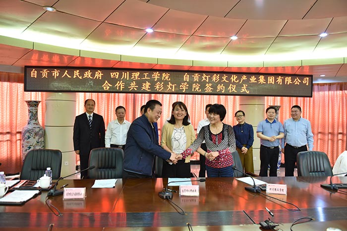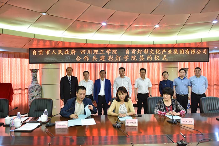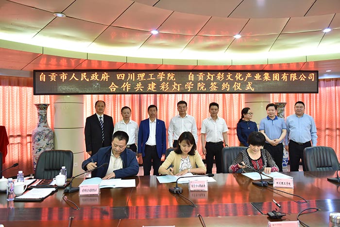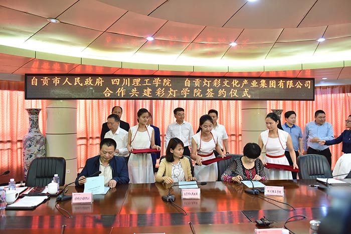 4月12日,自贡市人民政府、四川理工学院、自贡灯彩文化产业集团有限公司合作共建彩灯学院签约仪式在四川理工学院汇南校区举行。