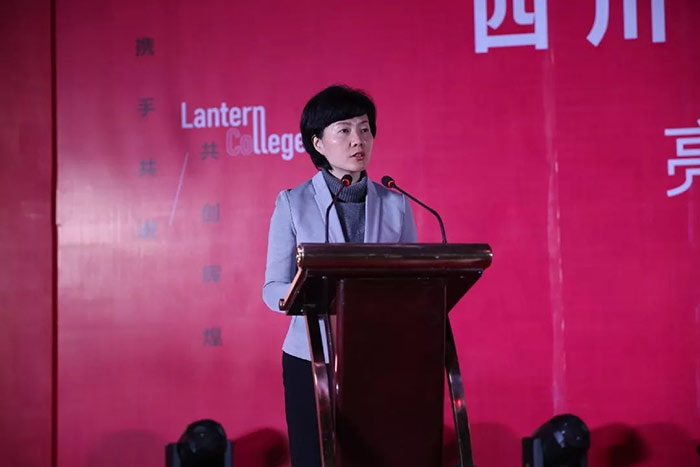 自贡市委常委、组织部长刘敏在致辞中表示,享誉海内外的自贡彩灯,每年吸引各方游客。自贡彩灯占据国内80%,国际90%以上的彩灯市场份额。以由中国灯会升级为环球灯会,成为对外出口的国家战略产品。未来5年,彩灯产业有望突破100亿,做大做强彩灯产业成为推动自贡老工业城市转型升级的重要支撑。彩灯学院的成立,将为彩灯产业高速发展提供有力的人才支撑,加速彩灯文化产业向高端转型迈进,向创新升级发展,全面提升国家文化出口基地的影响力和竞争力。