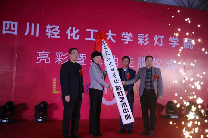 2018年4月12日,自贡市政府、四川轻化工大学、自贡灯彩文化产业集团三方合作共建彩灯学院协议签约;7月26日签订《建立四川灯彩教育管理有限公司合作协议》;8月18日成立“四川灯彩教育管理有限公司”。历时9个月,在合作三方的共同努力下,在“勤奋求实、艰苦奋斗、无私奉献、校兴我荣”的黄岭精神感召下,建章立制,园区规划,精心打造,迎来了这一历史性时刻----彩灯学院开园亮彩、“国家文化出口基地彩灯艺术中心”和“自贡市中小学研学实践教育基地”挂牌。