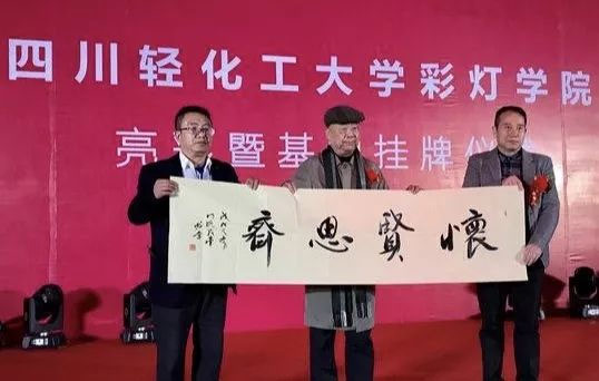 随后,中国书法界协会会员、四川省书法家协会理事黎光成为彩灯学院献上“怀贤思齐”四个大字,祝愿彩灯学院更加辉煌。与会嘉宾一同观看了节目表演并进行了园区观灯。